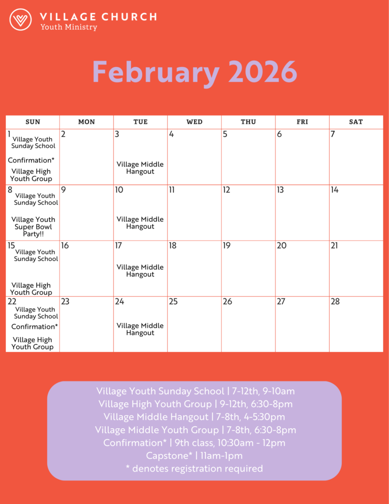 Students are invited to join us for our Village Youth Super Bowl Party on Saturday, February 8, from 5 PM to halftime in the Youth Loft. Whether you love football or are just here for the snacks and games, this night is all about fun and connection.