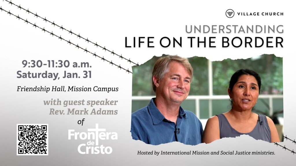 Understanding Life on the Border – 9:30-11:30 a.m. Saturday, Jan. 31, Friendship Hall (Mission Campus). Rev. Mark Adams, of Frontera de Cristo, will share stories of the work on both sides of the border near Douglas, Arizona and Agua Prieta, Sonora. This will be a morning of insight and inspiration for all who share God’s concerns for our immigrant neighbors. Please register HERE.