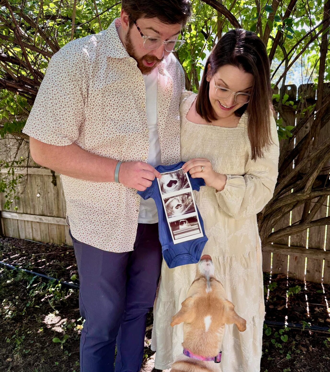 Hi, Village family! I wanted to share an exciting update from my family with you all. My husband Sam and I are grateful to be expecting a baby boy at the end of March 2026. Our dog, Charlie (pictured here), is getting promoted to big sister. We are over the moon with joy. More information will come about my parental leave and what that looks like for young adults and worship arts. In the meantime, know that Sam and I are thrilled to be raising our boy in two wonderful communities of faith (Village and Rolling Hills Presbyterian Churches). –Pastor Maggie