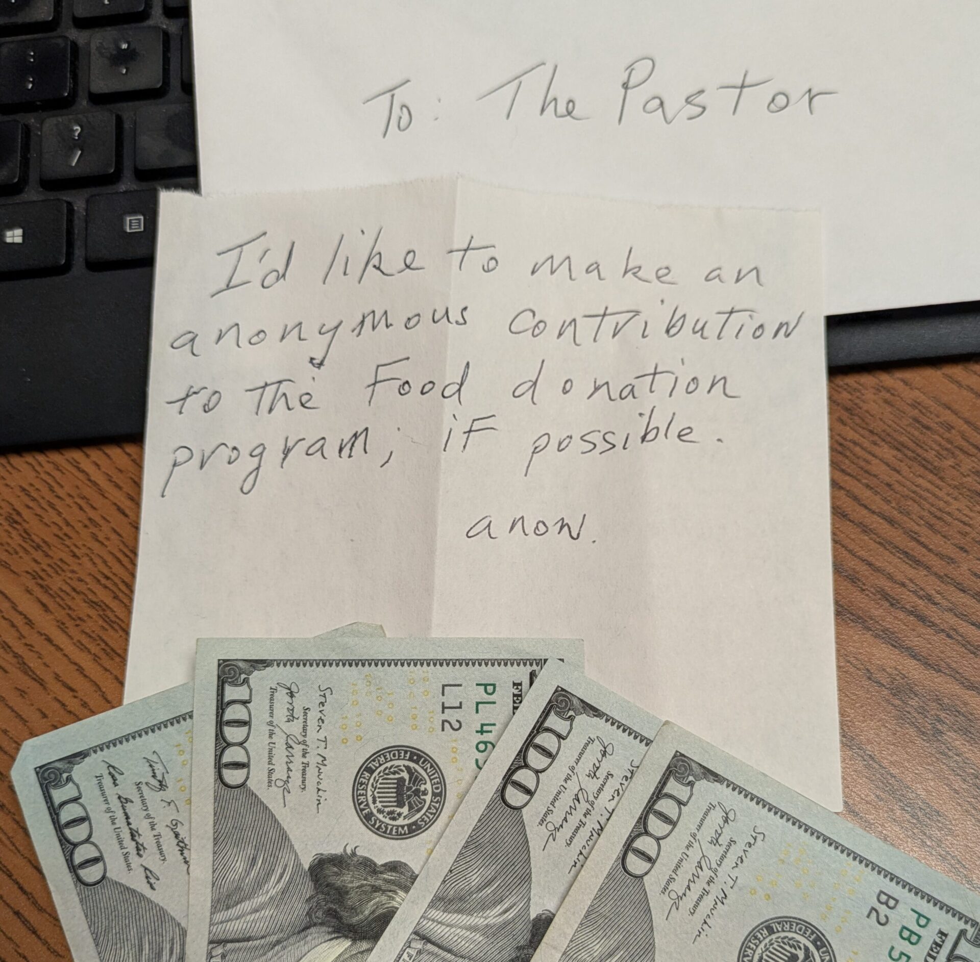 Anonymous gift for the Village Food Pantry