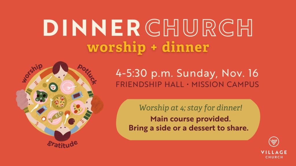 Dinner Church – 4-5:30 p.m. Sunday, Nov. 16, Friendship Hall, Mission Campus. Worship at 4 p.m. and then stay to eat around the table with your church family. We will provide turkey and a vegetable; feel free to bring a side dish or a dessert to share!