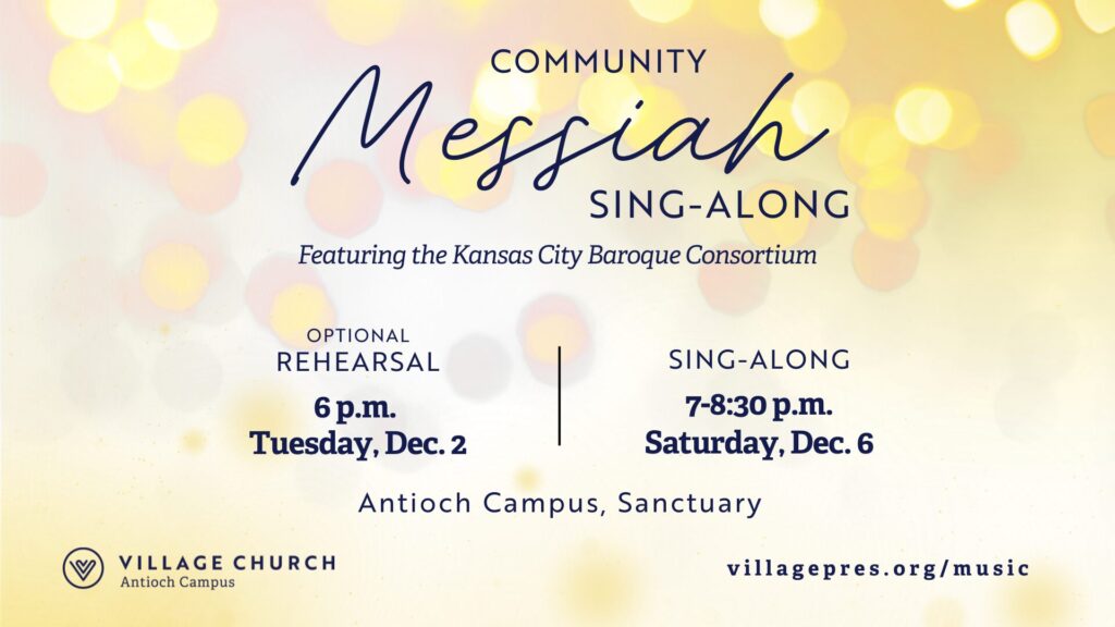 “Messiah” Sing-Along – 7-8:30 p.m. this Saturday, Dec. 6, Antioch Campus Sanctuary. We’ll welcome the Kansas City Baroque Consortium to accompany us this year! A reception will follow after the concert. Optional rehearsal tonight at 6 p.m.