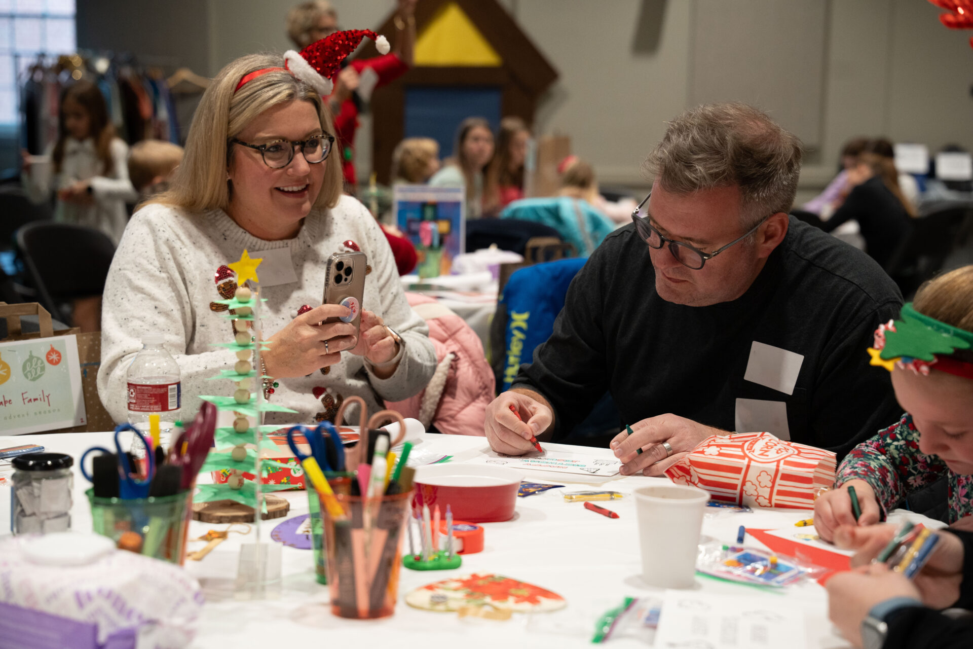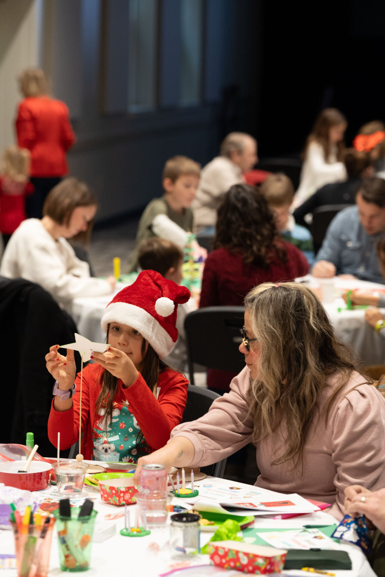 For families, one of the most festive and anticipated days of the year is the Advent Family Workshop. People of all ages to don spirited clothes and accessories then roll up their sleeves to create holiday crafts around tables, eat some sweet and salty snacks, and make new friends. This year, 92 people attended in the newly renovated Friendship Hall. Families also made 75 “Happy Birthday Jesus” cake-making kits for our neighbors at the Village Church Food Pantry. Thank you to all—especially our Children & Family Ministry team—who helped organize, plan, and execute this meaningful event!