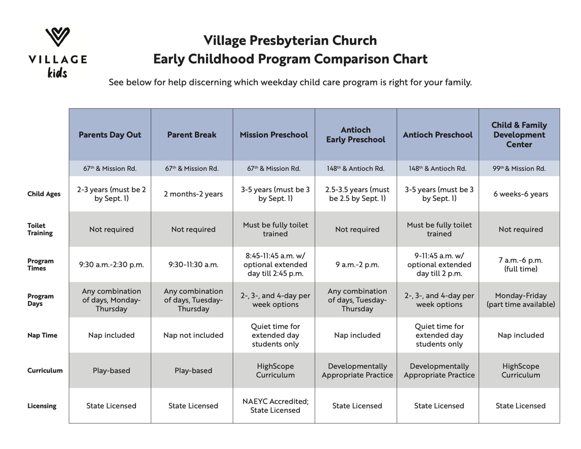 Village Church Child & Family Development Center is a full-time, weekday child care facility in Johnson County, Kansas serving ages six weeks through Pre-K.