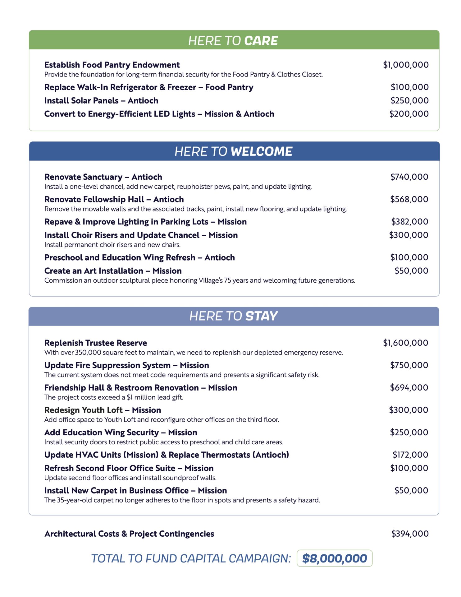 A capital campaign allows Village Church to strengthen our mission and ministry in ways that go beyond the scope of our annual operating budget.